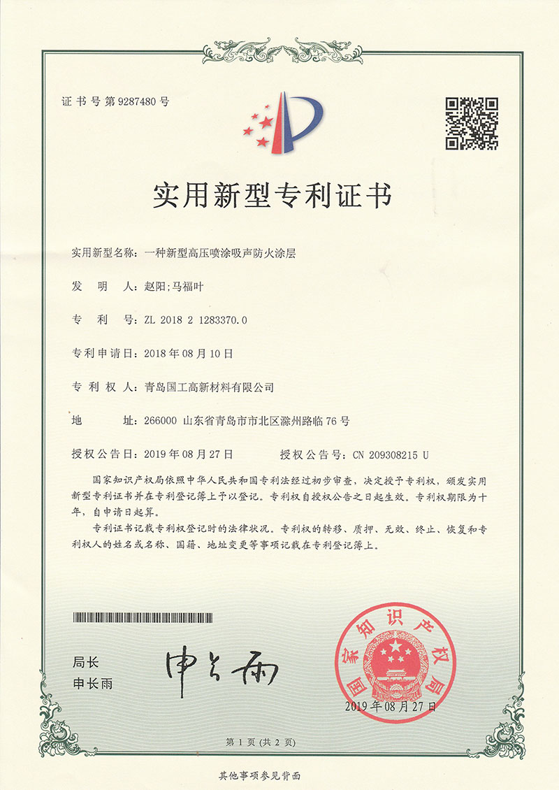 一種(zhǒng)新型高(gao)壓噴塗(tu)吸聲防(fang)火塗層(ceng)